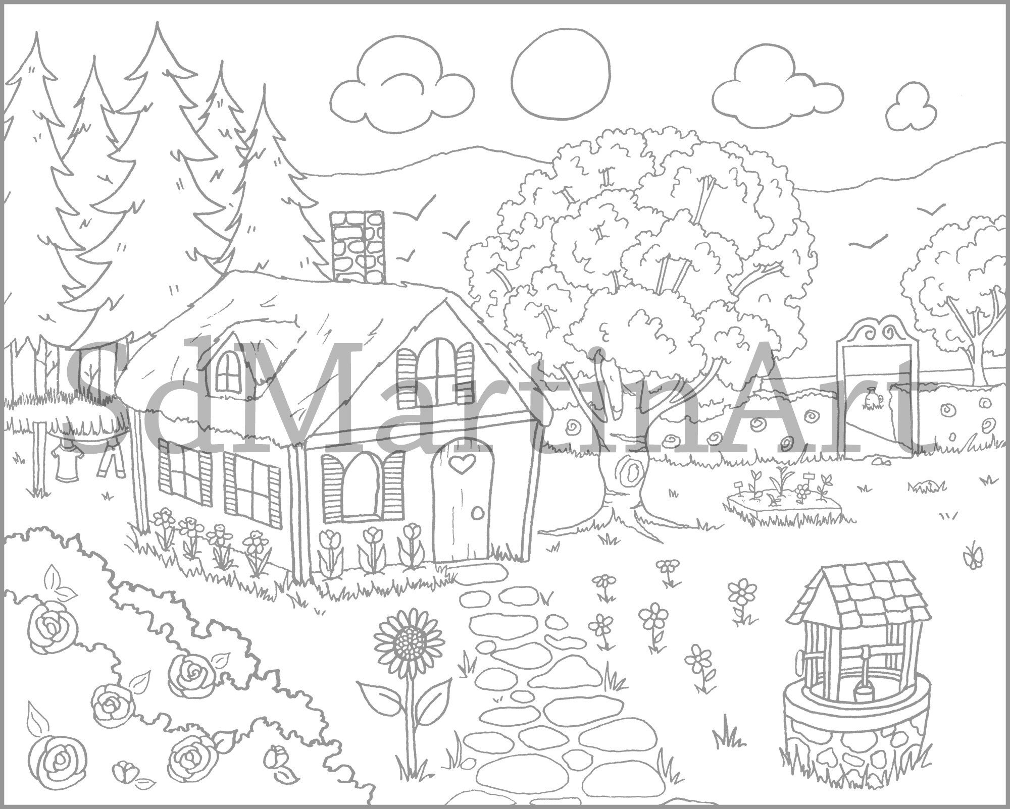 Cozy Cottage Printable Adult Coloring Book Page For Etsy Uk